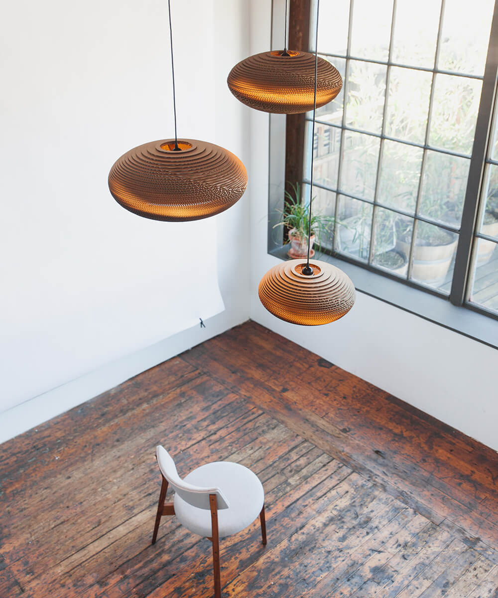 Rooted in Seattle as architects, founders Seth Grizzle and Jonathan Junker decided to further feed their creative appetites through product design and art exhibits. In 2007, "graypants" was scribbled onto a piece of paper and the new company's flagship line of pendant lights made entirely of repurposed corrugated cardboard, and - Scraplights - was promptly introduced. The collection quickly became a prime example of the principles that Graypants embodies to this day - responsible design, responsible materials, responsible production, and having fun.