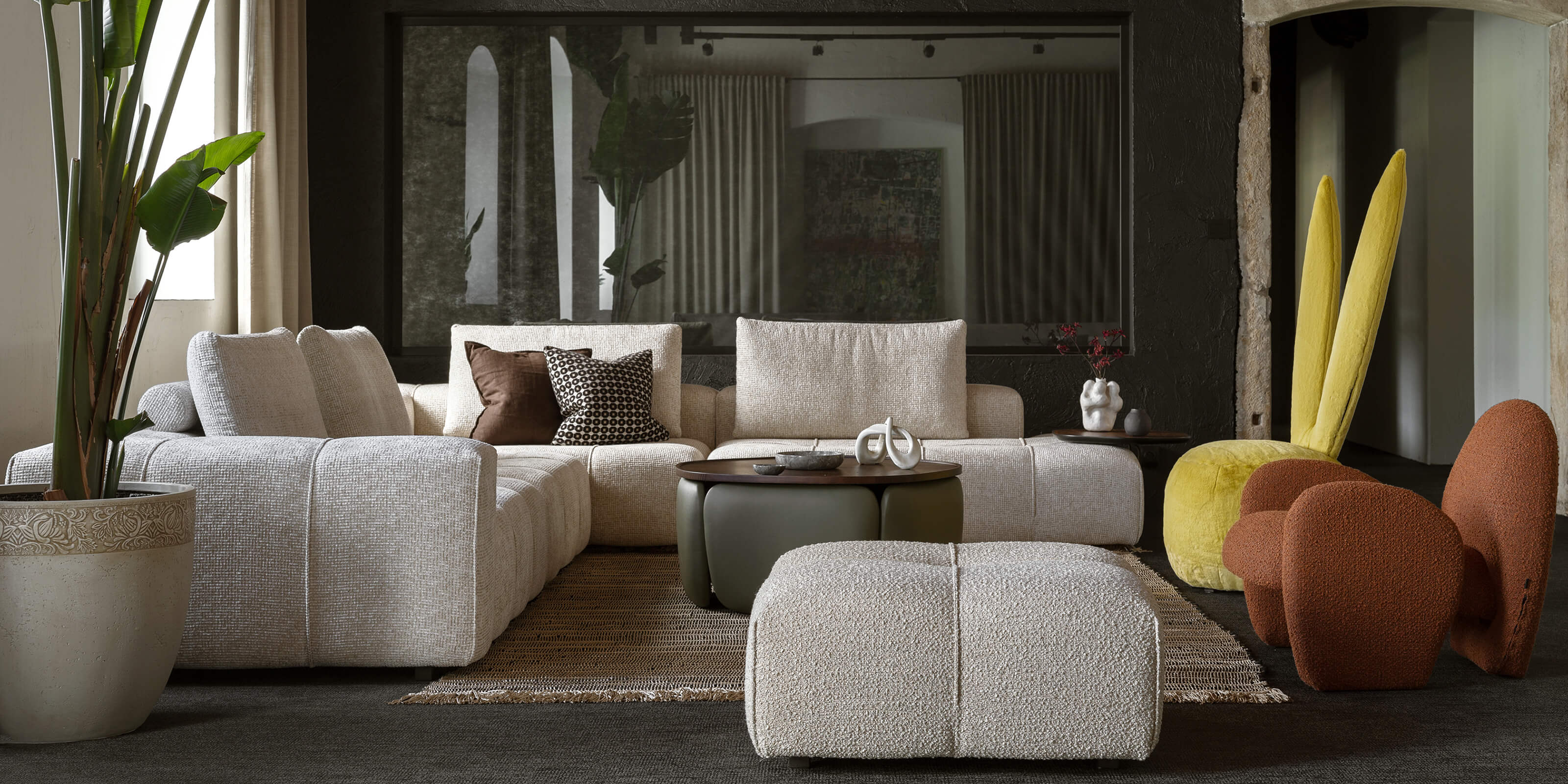 For the living room, we offer two and three-seater sofas, corner sofas, freely configurable modular sofas and practical fold-out sofas. The collections are complemented by armchairs, coffee tables and tables.