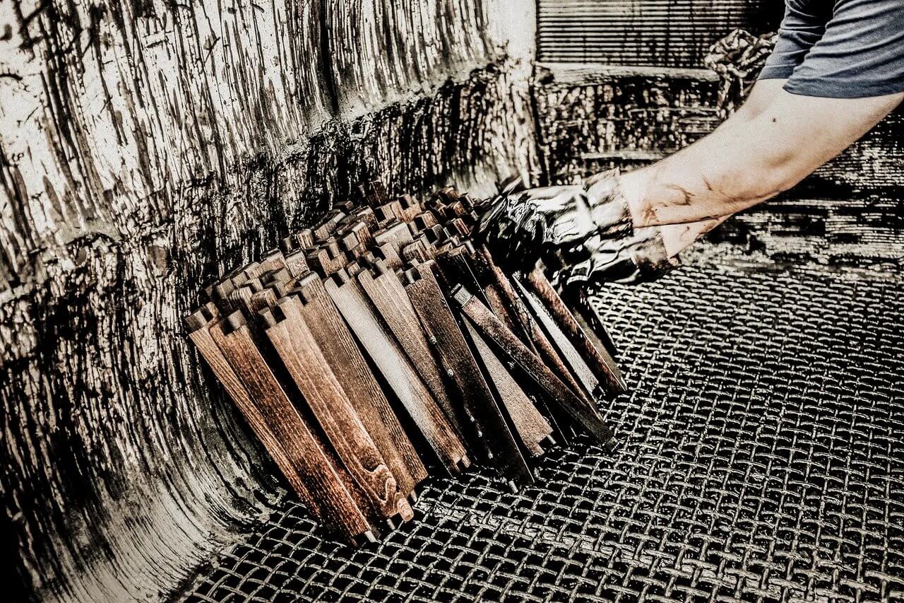 Each product is the work of at least 20 pairs of hands. They are the hands of a team of craftsmen and craftswomen who for six generations have been endowing steamed wood with new shapes and forms. Once bentwood dries, our skilled hands set to work on sanding, staining, assembling, oiling, upholstering and packing.
