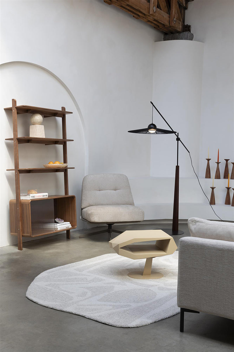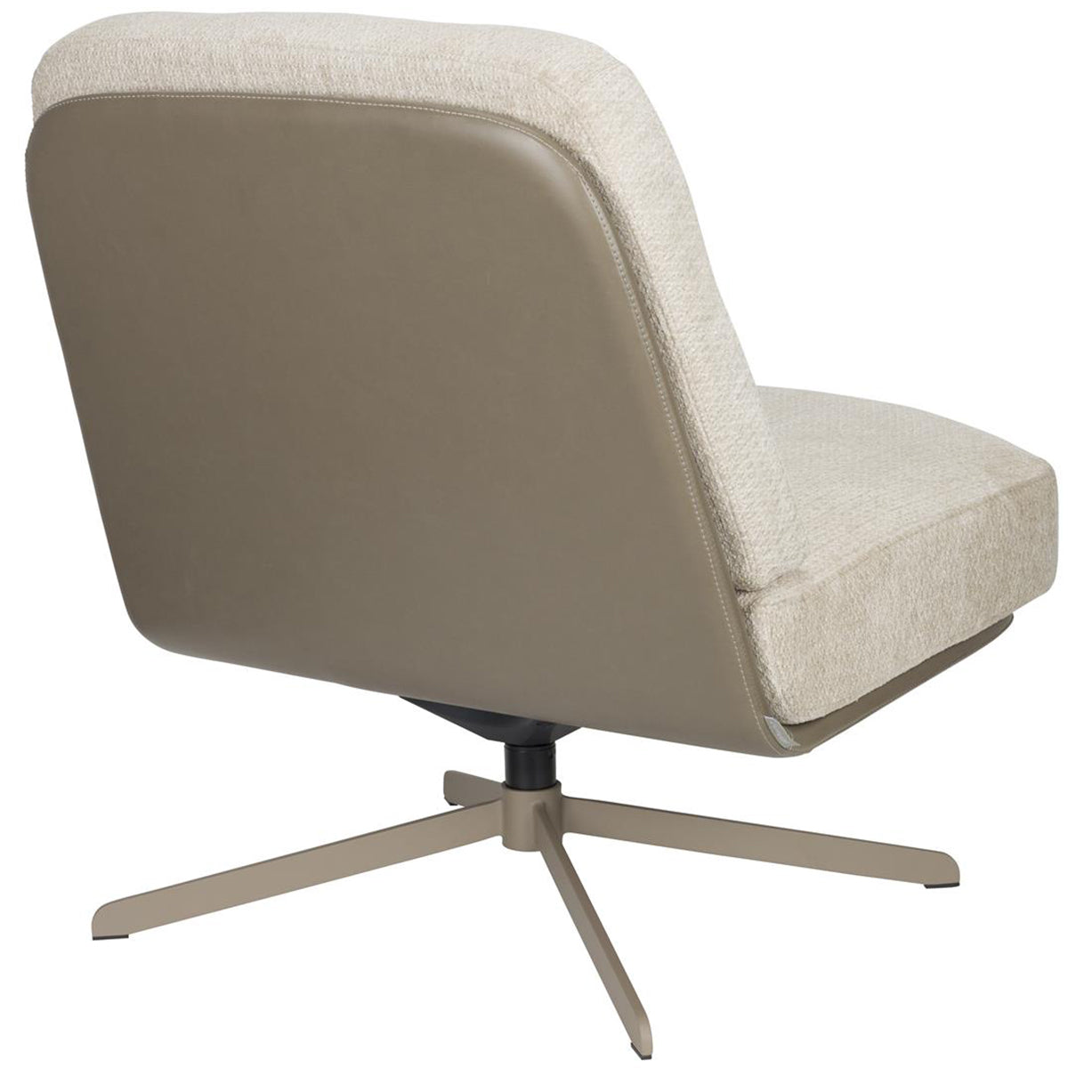 Take a break and unwind: that’s exactly what the Benjamin armchair is designed for. Sink into its thick seat and back cushions, which are wonderfully plush. The cushions are covered with soft fabric and stay firmly in place thanks to their Velcro attachment to the seat. The combination of the soft cream colour, the natural tone of the faux leather seat, and the swivel base give the chair a laid-back and stylish look.