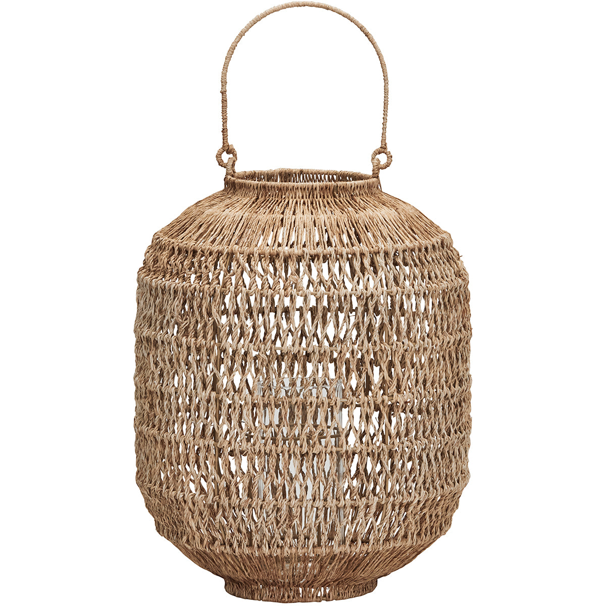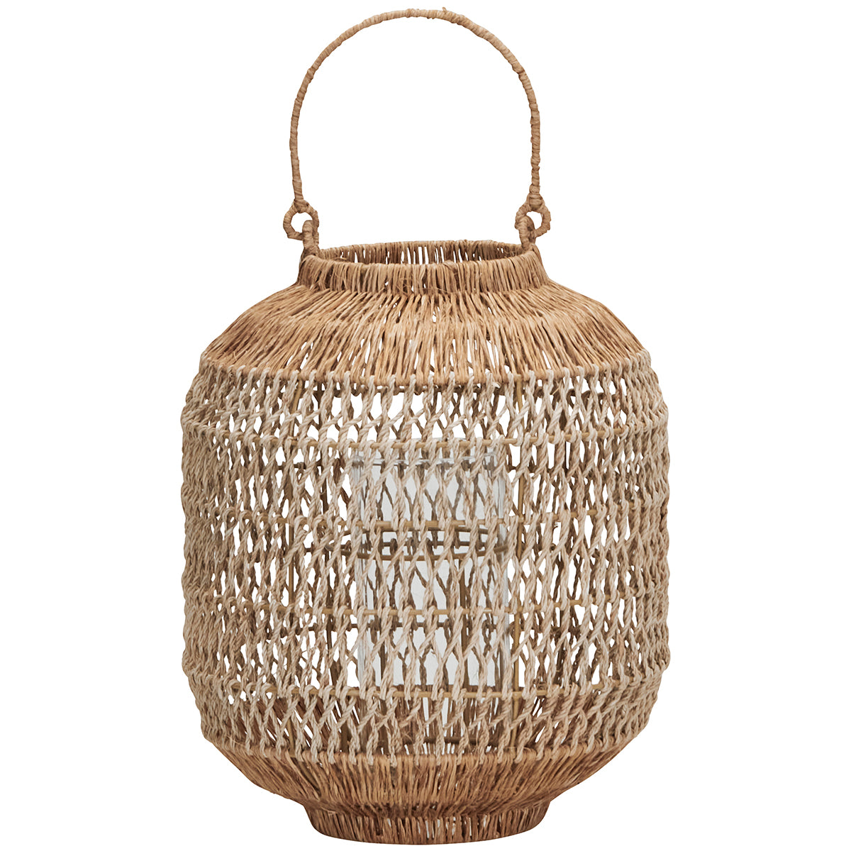 This handmade lantern, crafted from jute, iron, and glass, adds a touch of rustic elegance to any setting. Perfect for both indoor and outdoor use, its beautiful craftsmanship creates a cosy atmosphere, enhancing the charm of your home decor.
