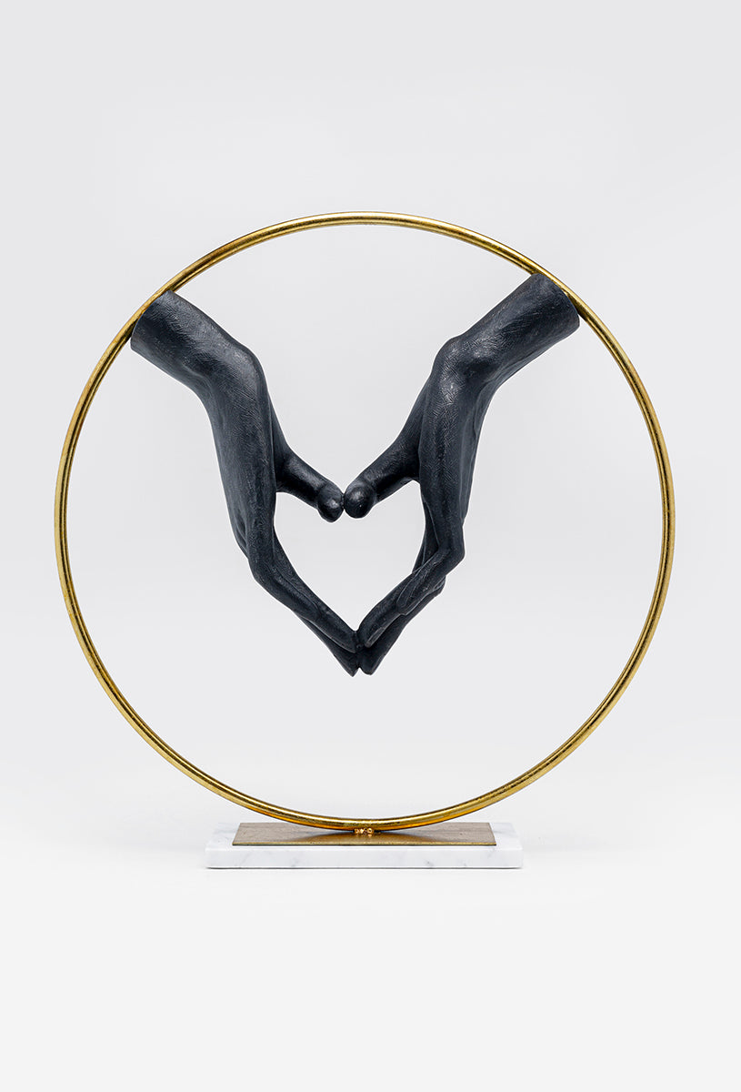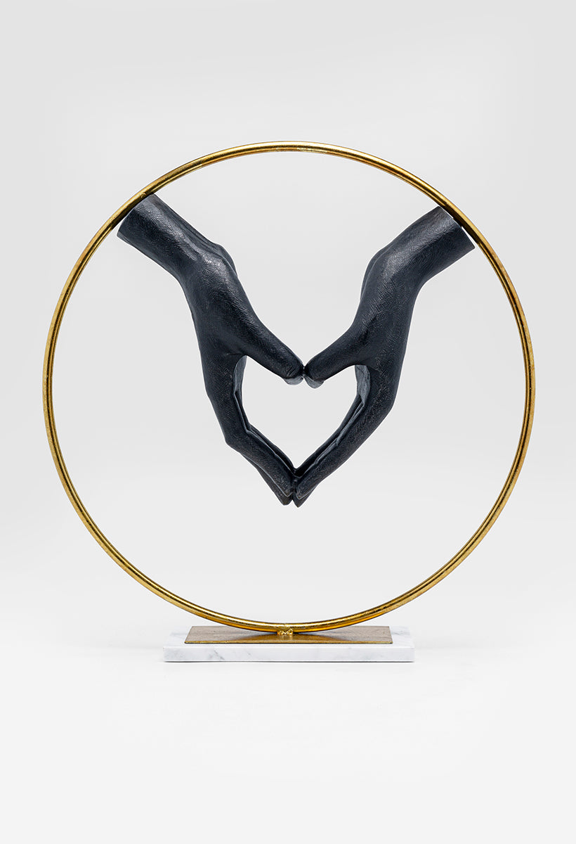 - Two hands form a heart: symbolic decorative object in black and gold with a base made of real marble
