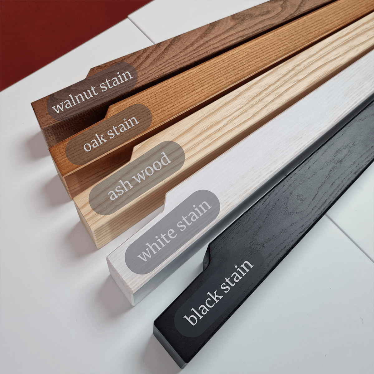 The base of the entry table is expertly crafted from solid ash wood, ensuring a strong and durable structure. The top is made of MDF available in different leg colours. This console is available in many stain colours: natural ash, black, walnut, oak, and white.