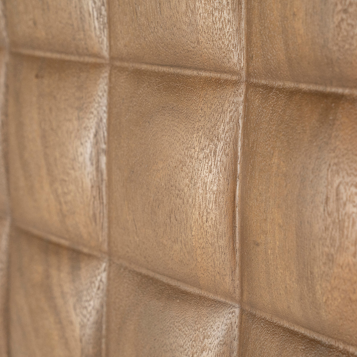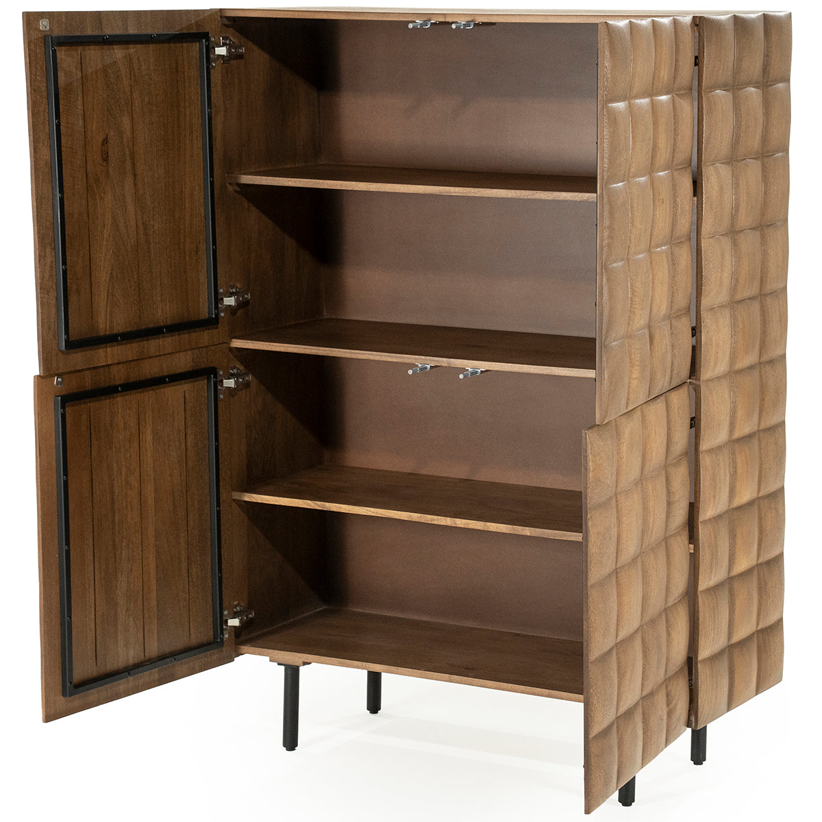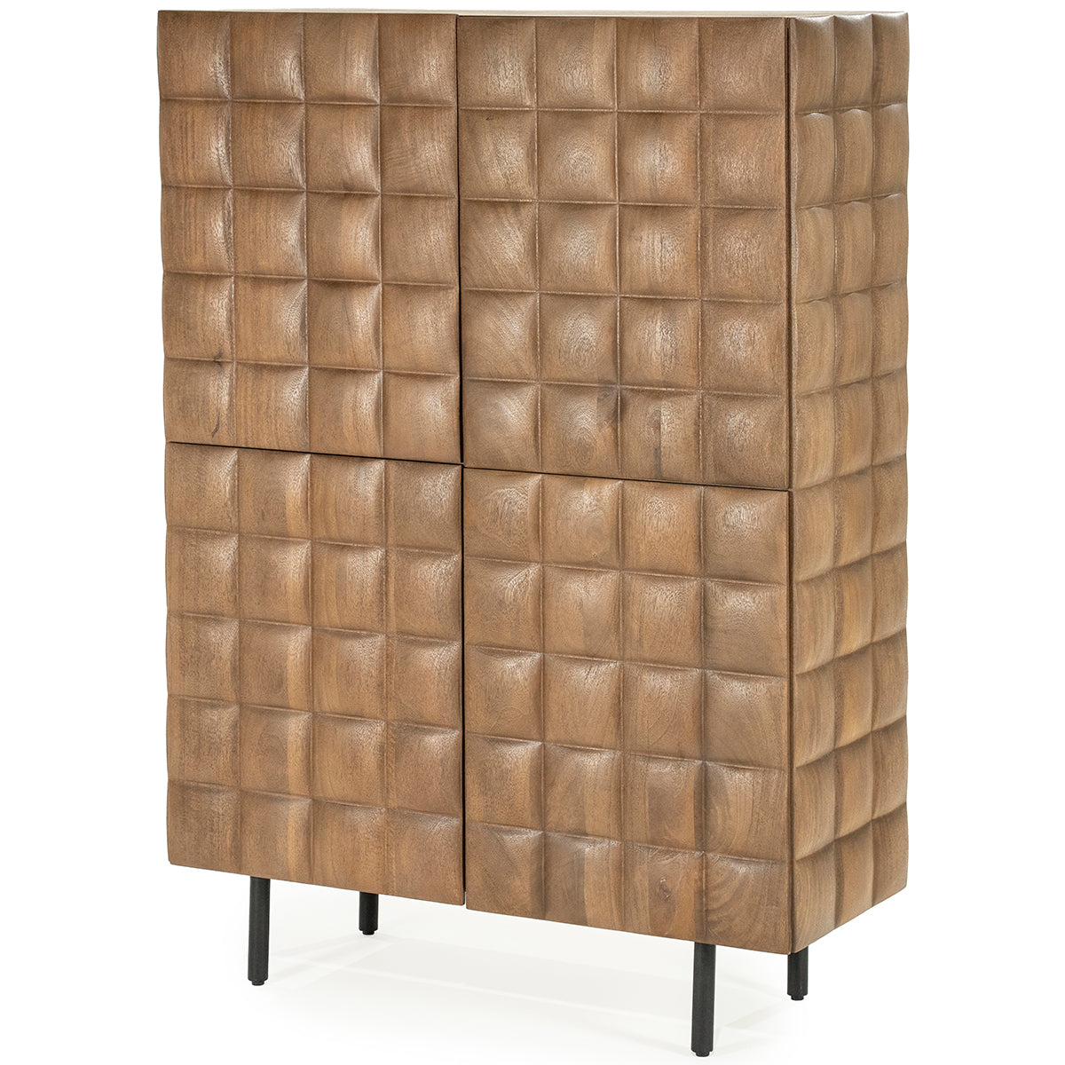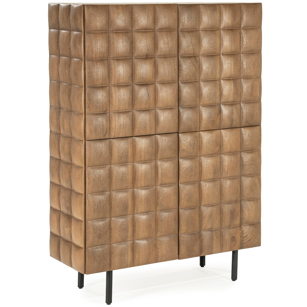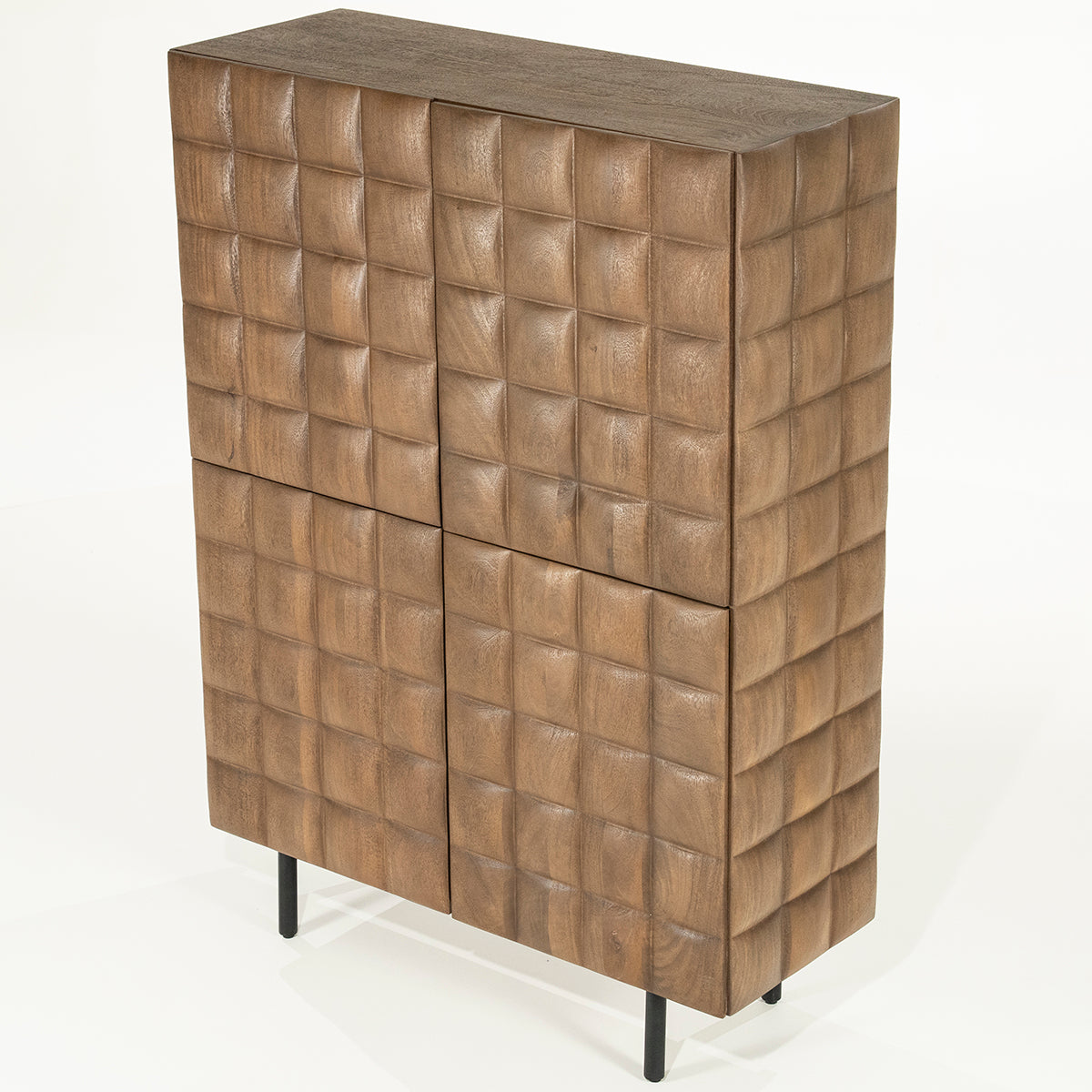 This is the elegant Felix Cabinet made of mango wood, featuring a modern design and a unique embossed texture on the front panels.