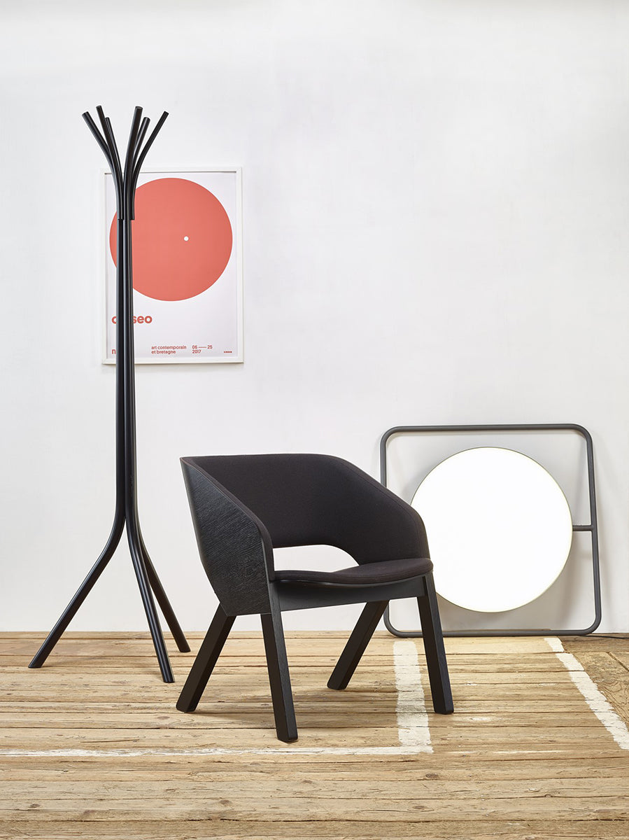 The Fleur, a simple coat stand, was entirely inspired by traditional manual wood bending processes. Three pieces of beechwood form a stable hanger for every item of clothing you need to hang up. Looks great in pigment. By Slovak designer Lubo Majer.