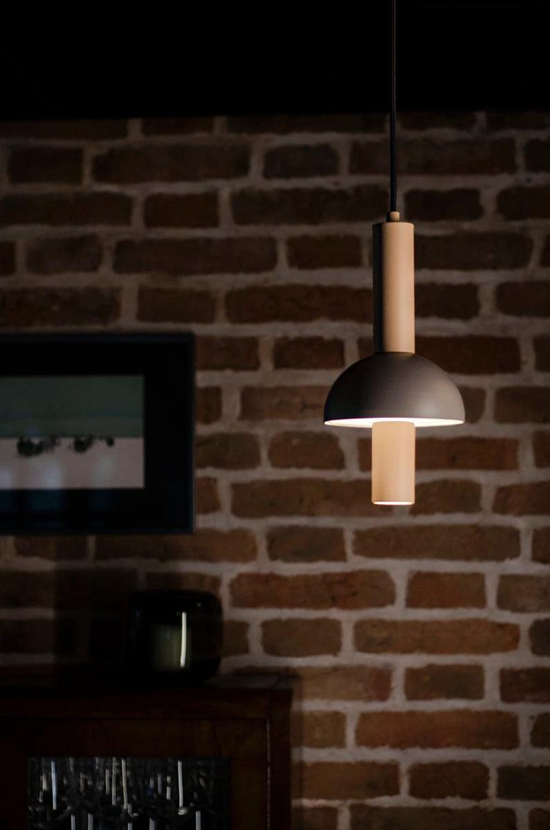 The Hidalgo design begins with the upper tube, providing a contemporary touch to the lamp. Deeper into the shade, we discover a semi-circular, open sphere, whose lower part has been delicately finished with a frosted glass cover. This subtle glass surface adds finesse to the lamp and diffuses light, creating a pleasant, delicate visual effect. The final detail is another tube, attached from below, adding a decorative accent, as well as serving a practical purpose.
