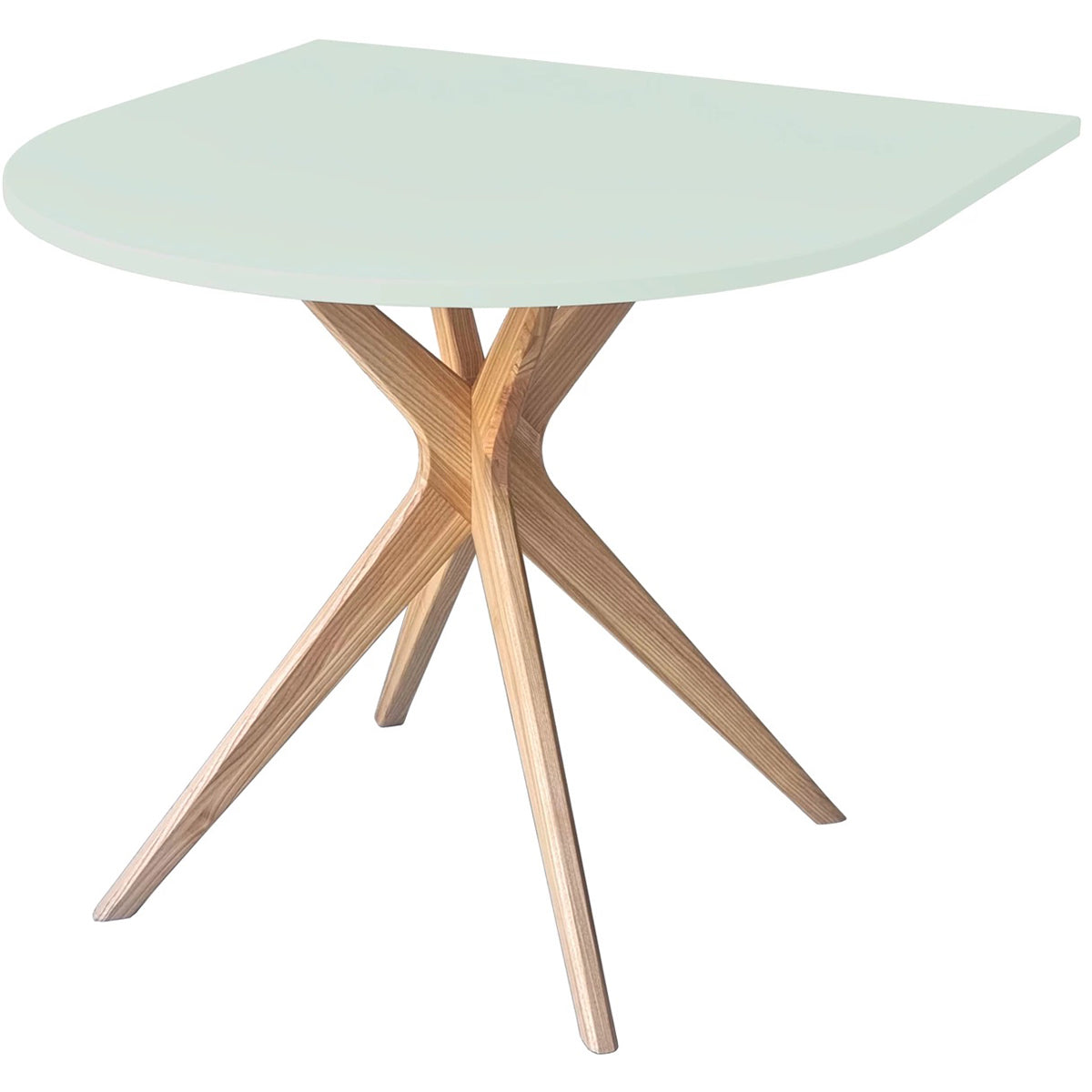 Small semi-oval dining table for 4 people. Perfect narrow kitchen table for 4 people in an unobvious but very functional shape. Rounded corners of the table are especially appreciated in narrow spaces, so users do not bump into sharp corners. This is a handy table for two people, but it can easily be used as a 4-person table.