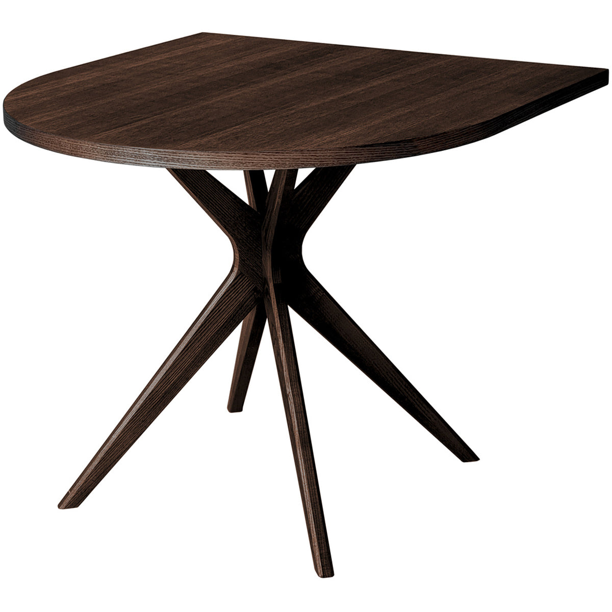 Small semi-oval dining table for 4 people. Perfect narrow kitchen table for 4 people in an unobvious but very functional shape. Rounded corners of the table are especially appreciated in narrow spaces, so users do not bump into sharp corners. This is a handy table for two people, but it can easily be used as a 4-person wooden table.