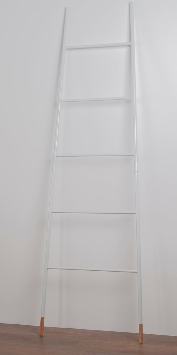 Our cute Ladder Rack does what every other rack does but is slightly different due to its added eye-catching appearance which makes it a stunning addition to your closet. Featuring an authentic white powder-coated structure with a natural lacquered texture and rubber wood feet for support, you just have to lean it on the wall to add that spicy touch to your décor arrangement.