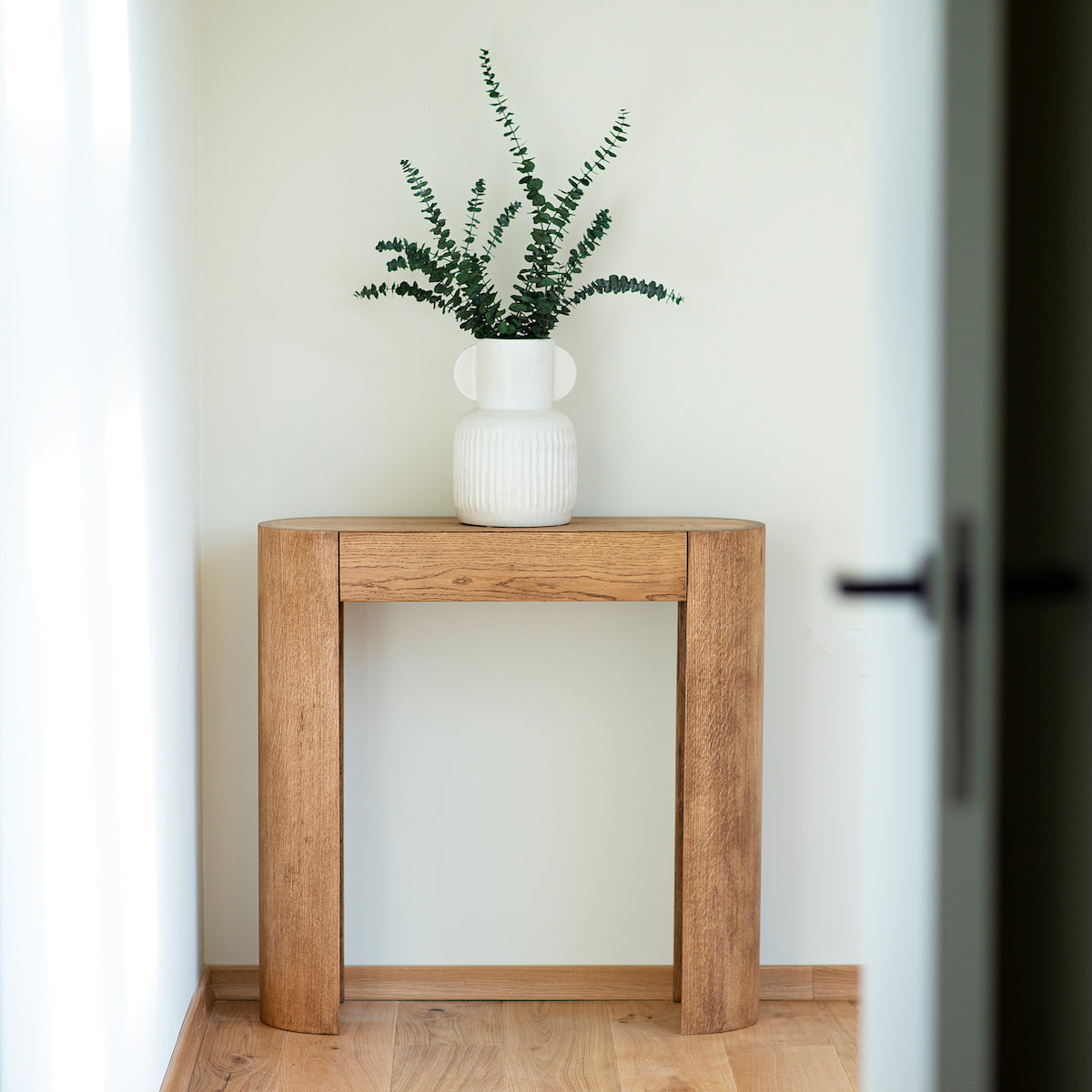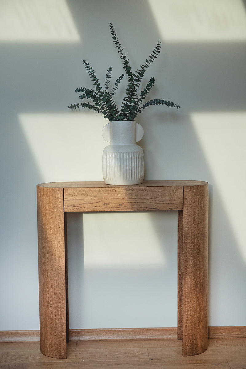 The Lido oak console with rounded sides is an elegant and stylish piece of furniture that fits perfectly in both modern and classic interiors. Made from solid oak wood, the console stands out with its rounded sides, giving it a unique character.