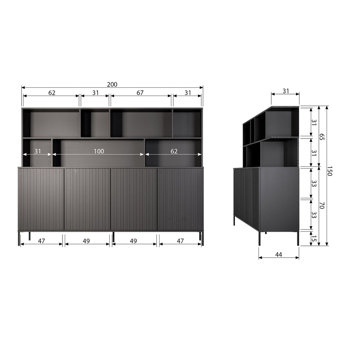 A unique addition to the New Gravure sideboard from the collection of Dutch interior brand WOOOD is the New Gravure wall cabinet. The wall cabinet is made of pine and finished with a dust stain. Present your most beautiful home items in the cabinet and discover a sea of storage space behind the four relief doors.