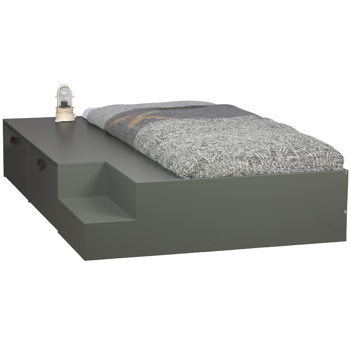 This Stage bed from the collection of the Dutch brand Vtwonen is robust and sturdy. The bed is made of solid, FSC-certified, pine lacquered in a green soap tint. The two extra matching bed drawers with brown leather handles make Stage complete. Extra storage space in a children's room is always a good idea. The storage drawers are fitted with wheels so that they are easy to open and close. Stage Bed is fitted with two storage drawers, handy for placing a night light.