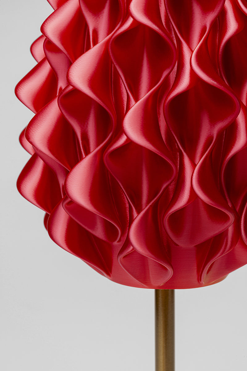 - The lampshade impresses with its unusual shape and shimmers in bright colours depending on the incidence of light