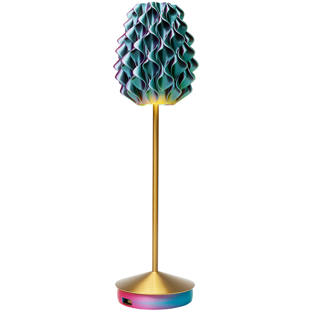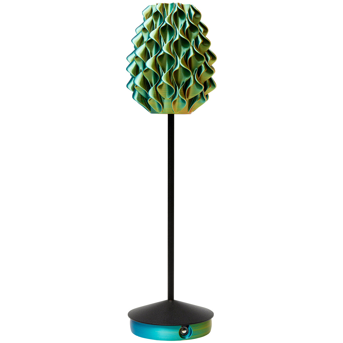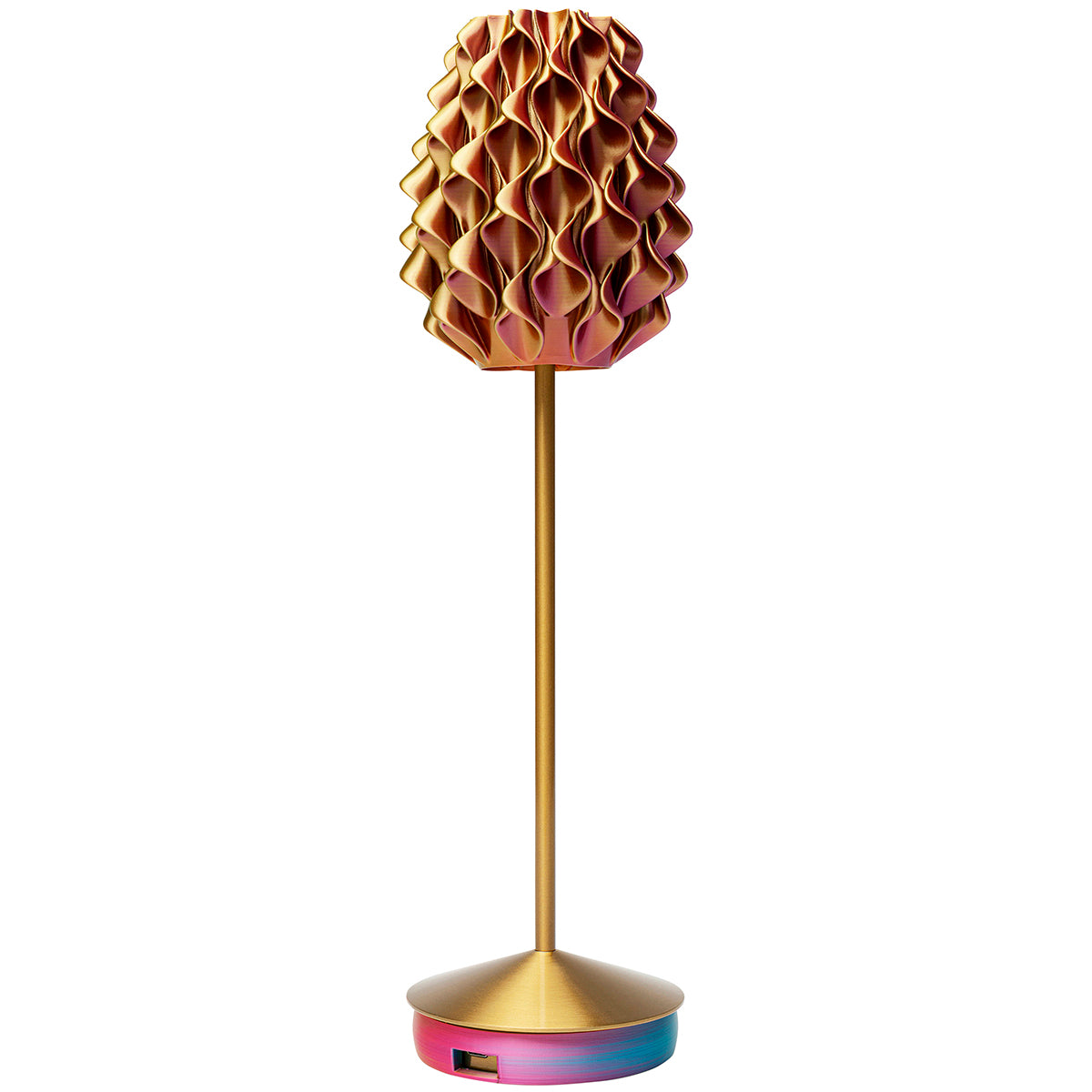 This stylish table lamp combines modern design and functional sophistication. The artfully shaped shade gently catches the light and creates fascinating effects depending on the viewing angle. Thanks to the integrated dimming function and cordless battery operation, it offers maximum freedom in terms of placement, perfect for dinner evenings on the terrace or cosy reading corners in the living room. The delicate frame made of sturdy metal lends the light object an elegant lightness. Ideal for stylishly highlighting sideboards, bedside tables or window sills and creating an atmospheric light source.