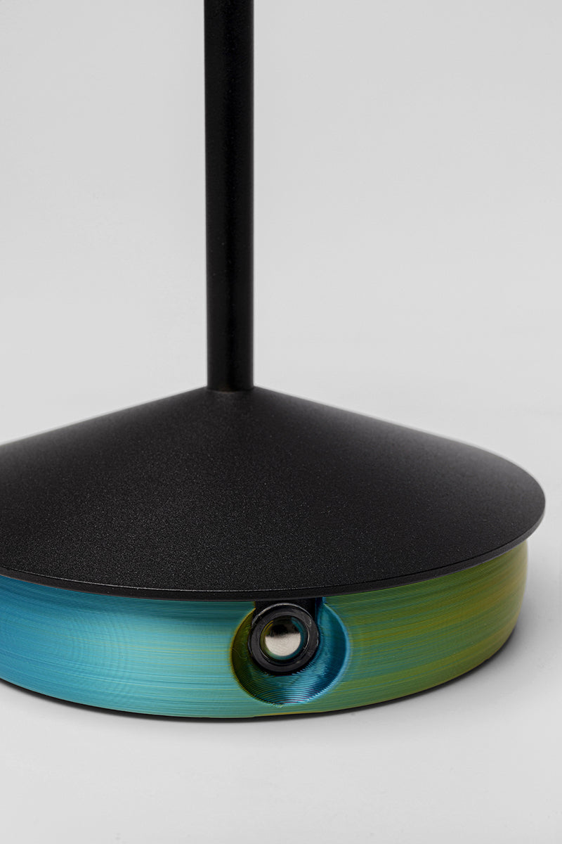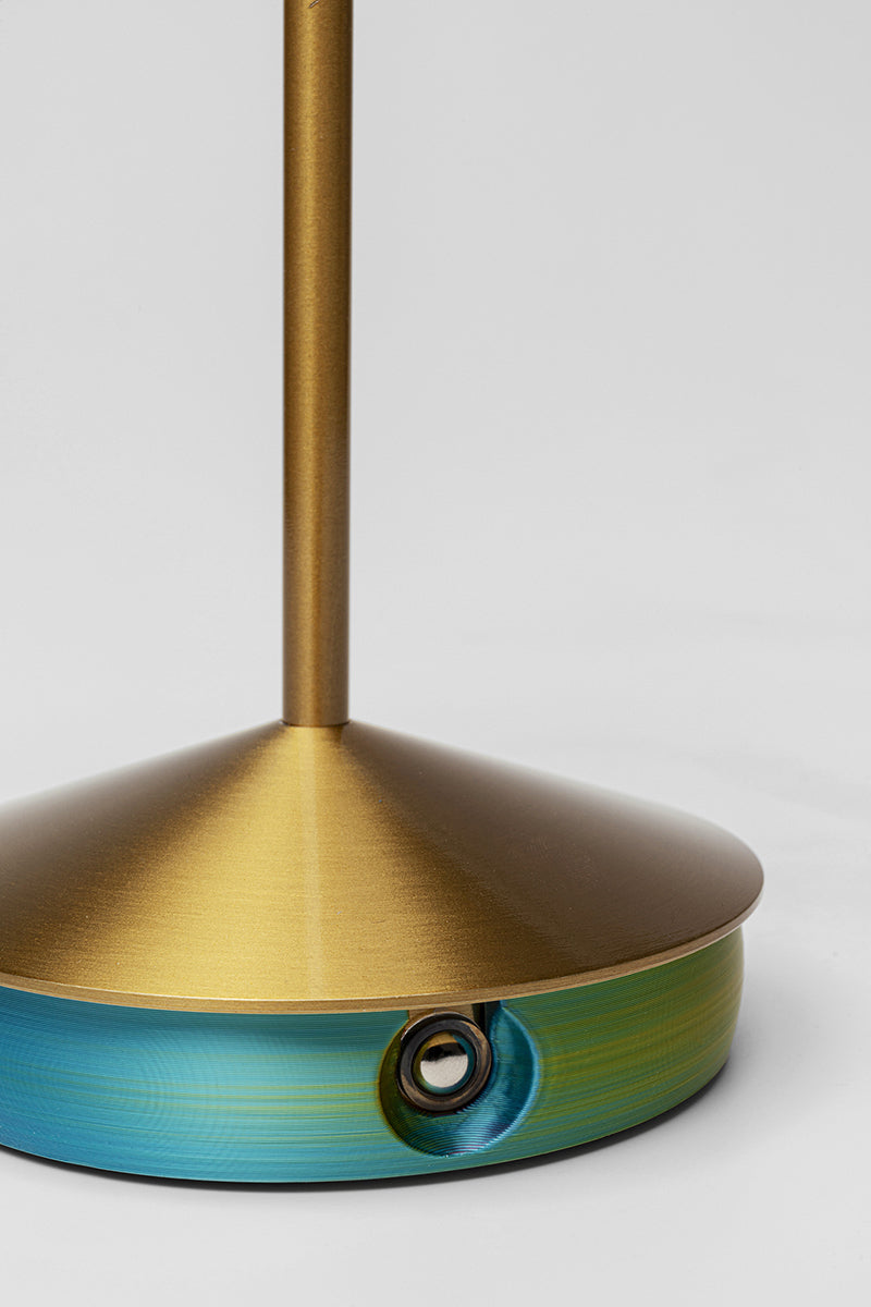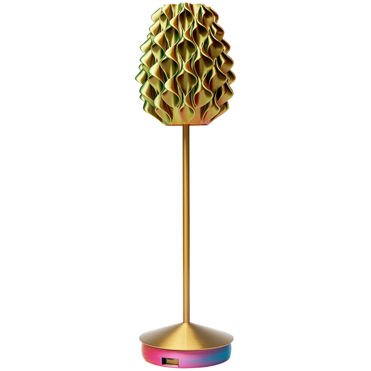 This stylish table lamp combines modern design and functional sophistication. The artfully shaped shade gently catches the light and creates fascinating effects depending on the viewing angle. Thanks to the integrated dimming function and cordless battery operation, it offers maximum freedom in terms of placement, perfect for dinner evenings on the terrace or cosy reading corners in the living room. The delicate frame made of sturdy metal lends the light object an elegant lightness. Ideal for stylishly highlighting sideboards, bedside tables or window sills and creating an atmospheric light source.