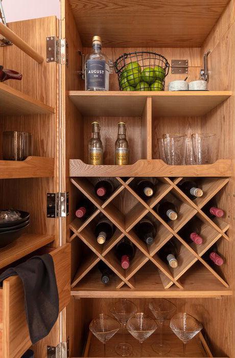 Movable home bar furniture with useful features is a great way to save space and get the most out of your living room. Home bars are the latest trend in functional furniture, and this bar cabinet in classy beige is a perfect example. Inspired by classic sea-going trunks, this bar cabinet offers a variety of functional storage features including pop-up compartments, compartments for bottles and glasses, and drawers. The easy-clean cover in a stylish wicker look is not only elegant but also practical. Thanks to the castors, the bar cabinet can be easily transported from room to room. With this movable folding home bar, everything is always at hand to treat your guests and make the next party a success.