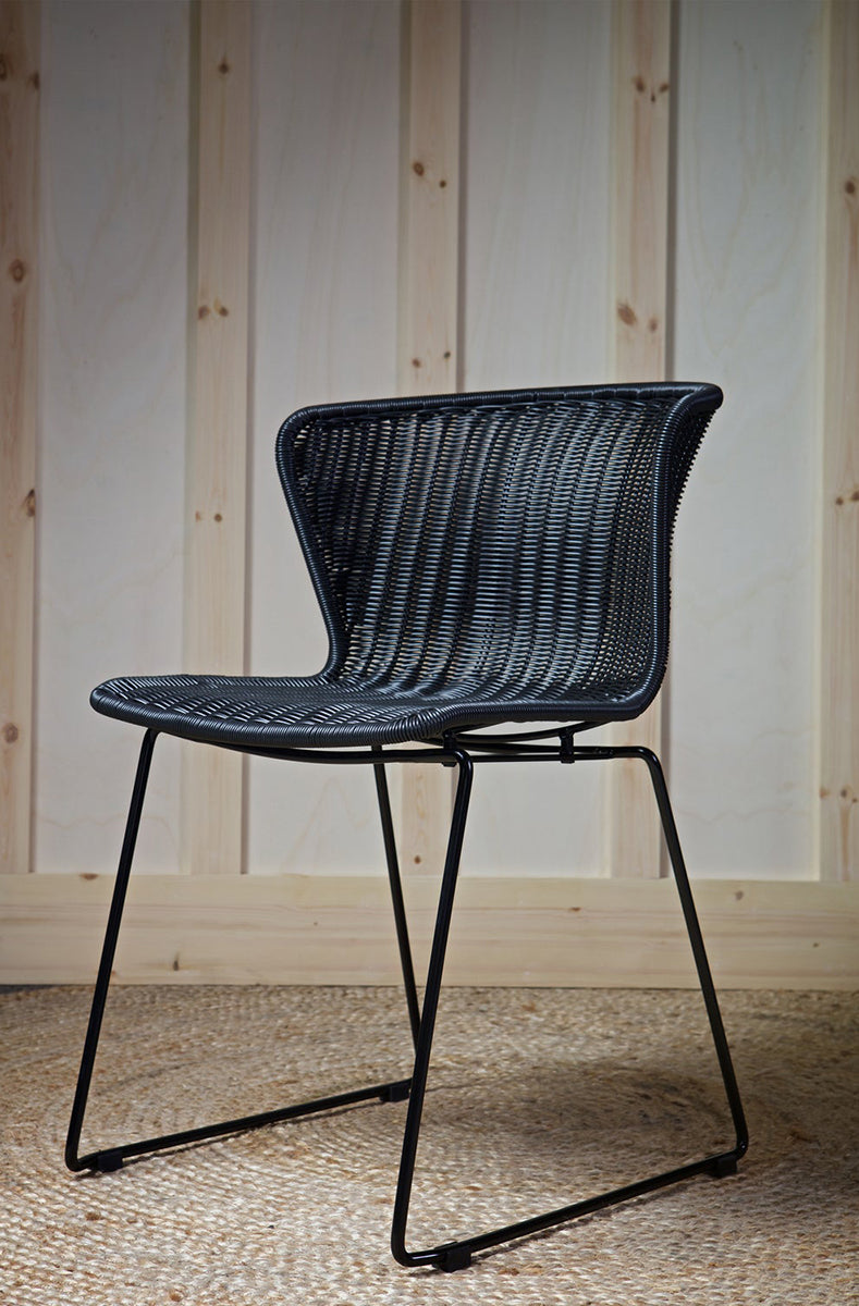 These sturdy Wings chairs by the Dutch brand WOOOD meet the living trend of the moment: rattan and black steel. The seat is made of braided polyester rattan in a natural, natural melange or black colour. The steel frame has a black powder coating. Both the seat and frame are finished with an outdoor coating, making Wings suitable for indoor and outdoor use.